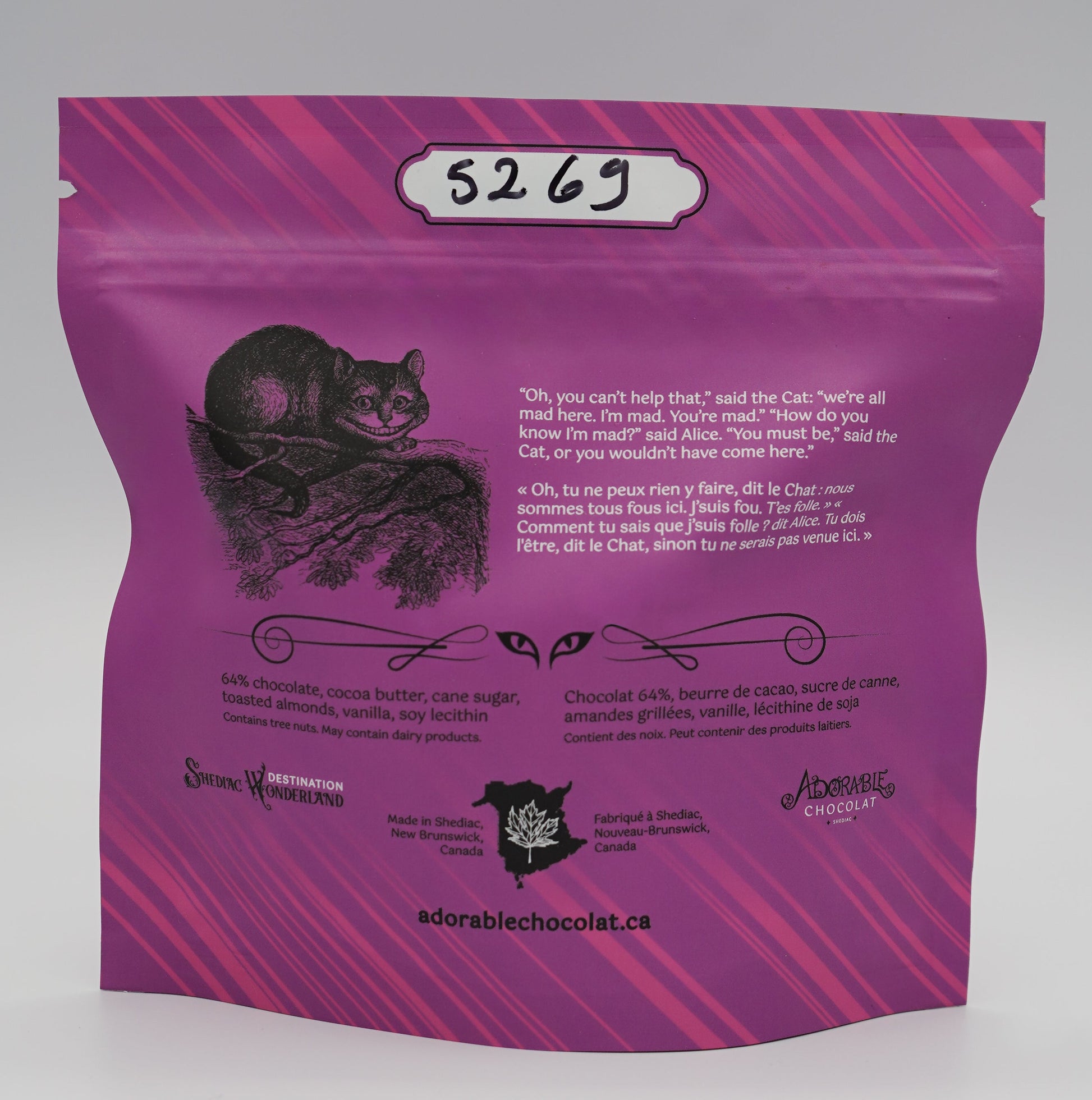 64% chocolate, cocoa butter, cane sugar, toasted almonds, vanilla, soy lecithin