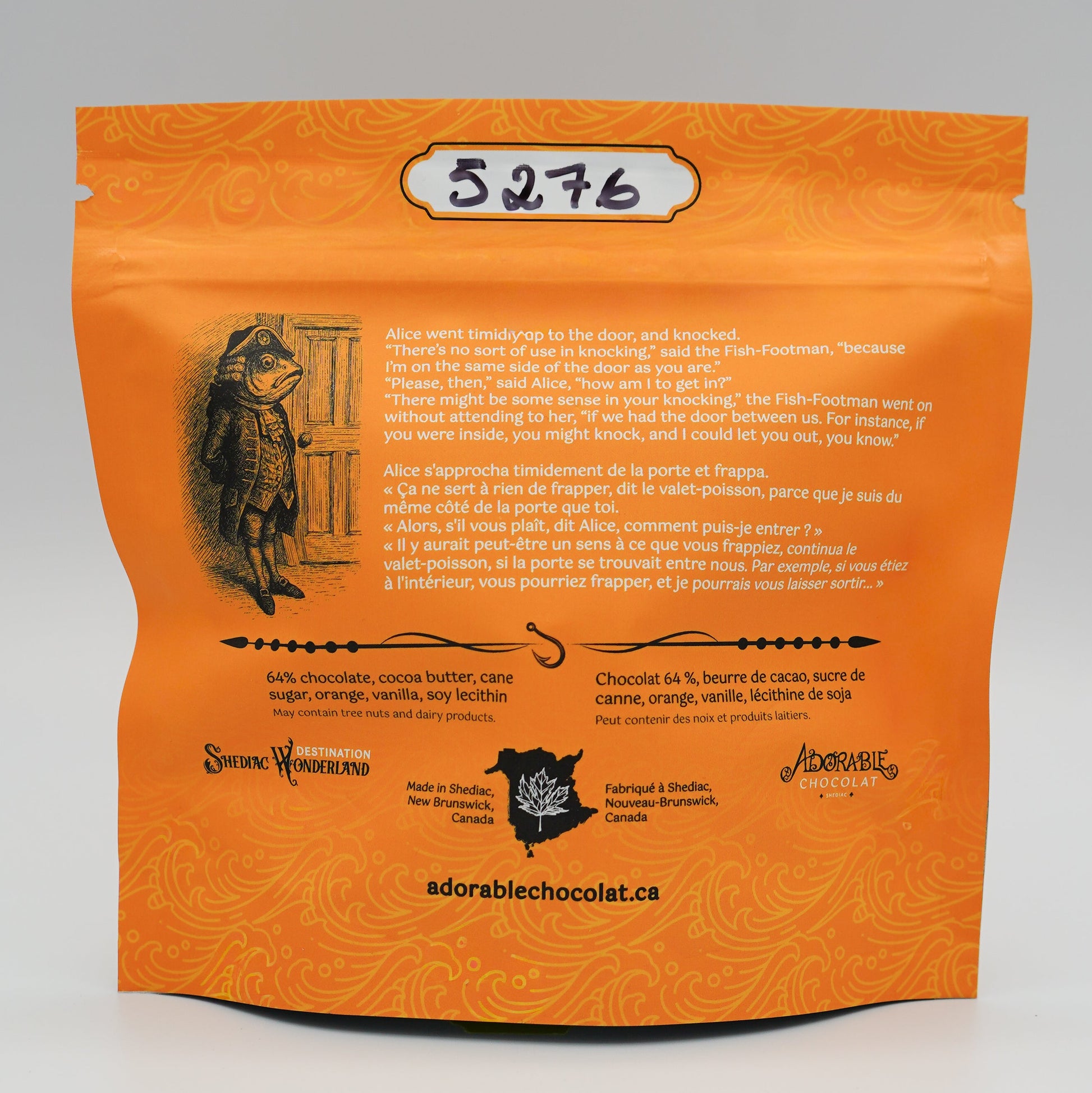 64% chocolate, cocoa butter, cane sugar, orange, vanilla, soy lecithin